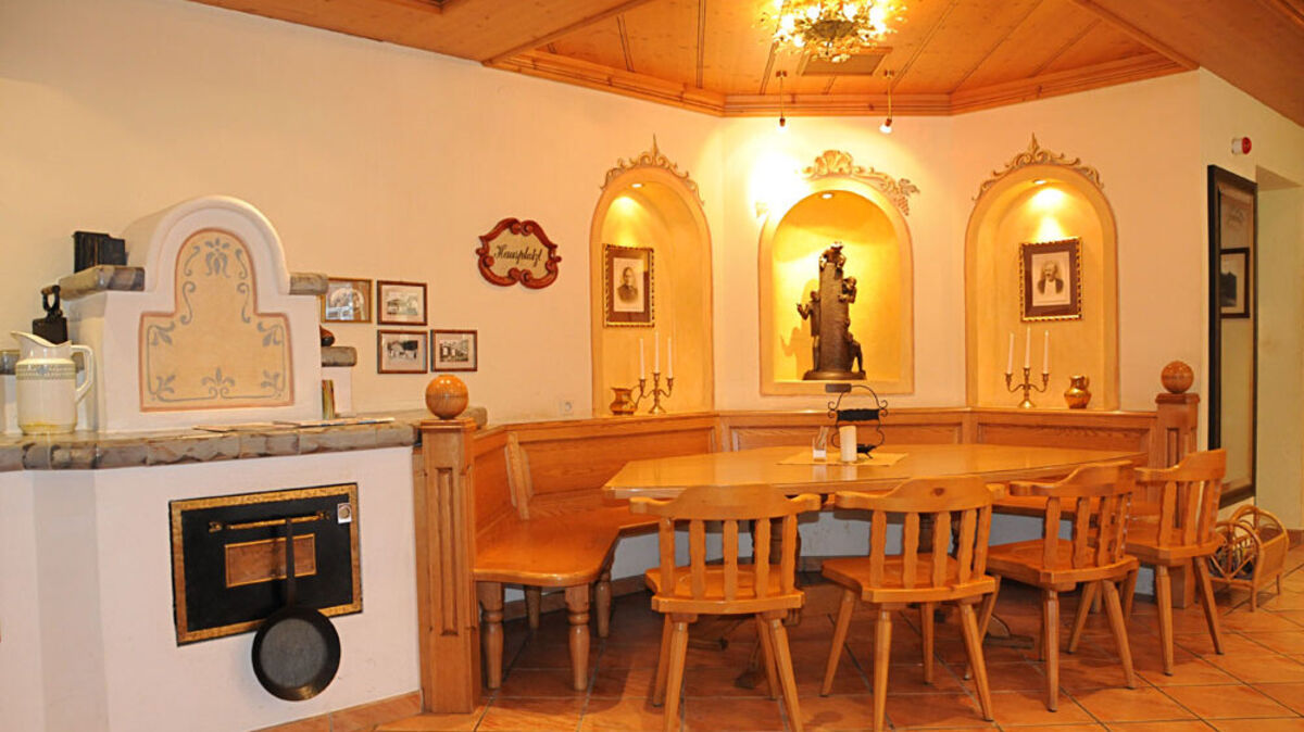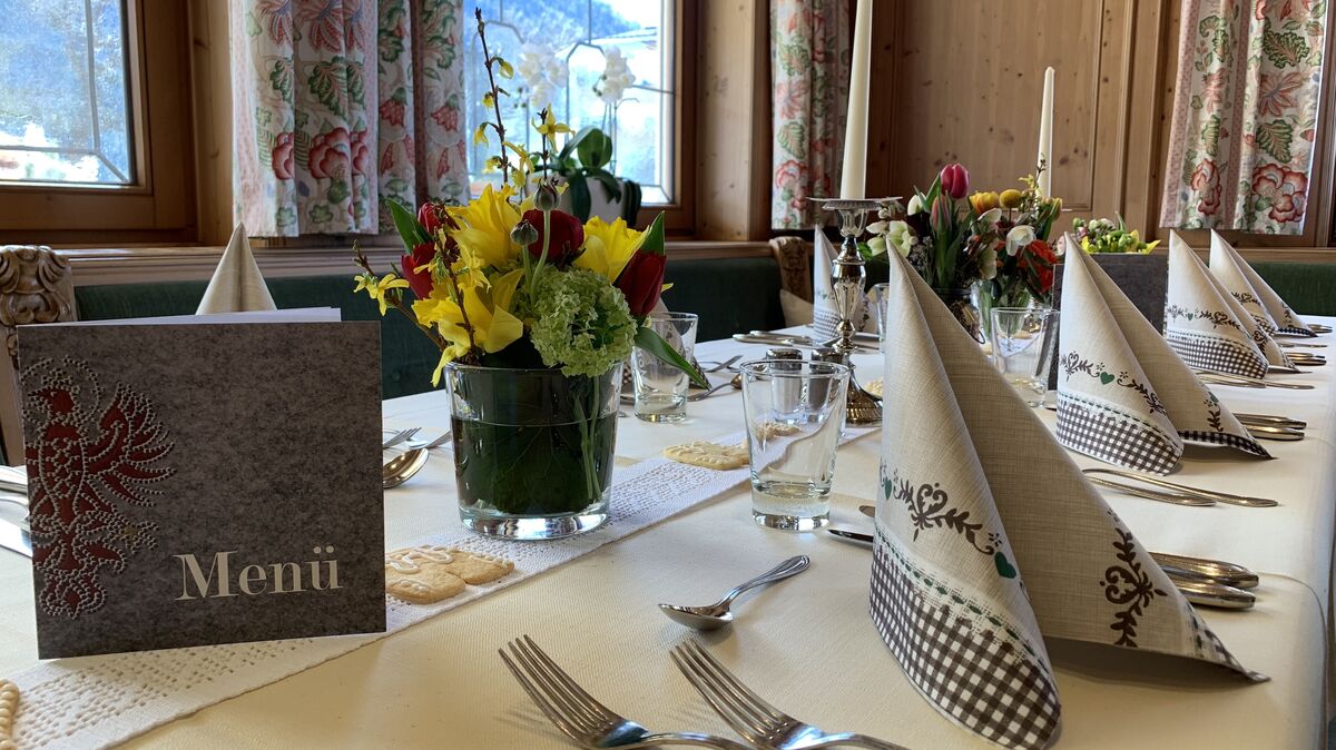 You will find your personal place for relaxation and enjoyment in the house in the cozy Theresienstube, in the spacious reception hall with our lounge area, in the Voitlstube for private dining, or in the elegant dining room. On the sun terrace you can easily leave everyday life far behind you, surrounded by a wonderful mountain landscape.